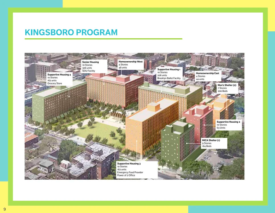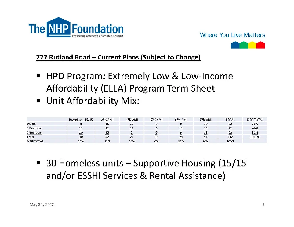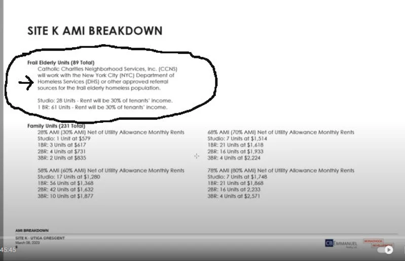 Families are left out with only about 5% of the new housing units being 3 BR apartments. A disproportionately high amount of new housing units (close to 50%) are being built for social services (formerly homeless, homeless, supportive housing). Kingsboro West, the largest new development of 1090 units, still has yet to disclose bedroom size counts. This is not Fair Housing for All. It's Housing for Special Interests who receive massive government subsidies to segregate the disabled on Clarkson Ave.
